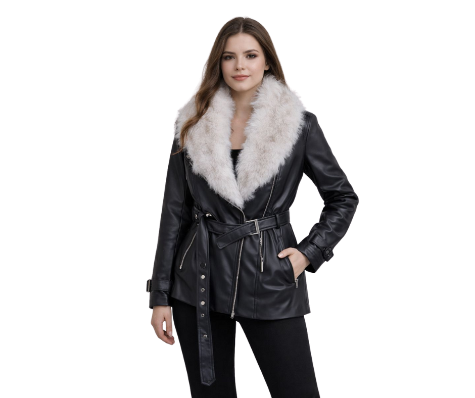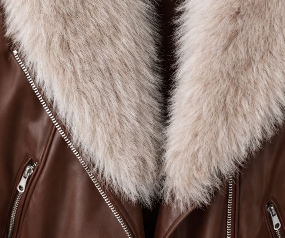 Confeccionada en material efecto piel de alta calidad, ofrece una textura lisa, flexible y resistente que imita el cuero natural, manteniendo ligereza y comodidad. El interior forrado proporciona una sensación agradable al contacto con la piel, mientras que el cuello de pelo sintético añade abrigo extra y un acabado lujoso sin renunciar a la practicidad.