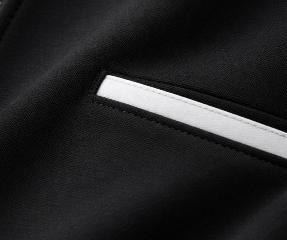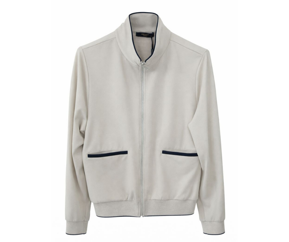 La chaqueta destaca por su diseño minimalista con detalles en contraste en cuello y bolsillos, que aportan un acabado premium. Su cuello alto y cremallera frontal la hacen perfecta tanto para looks urbanos como para estilos más relajados.