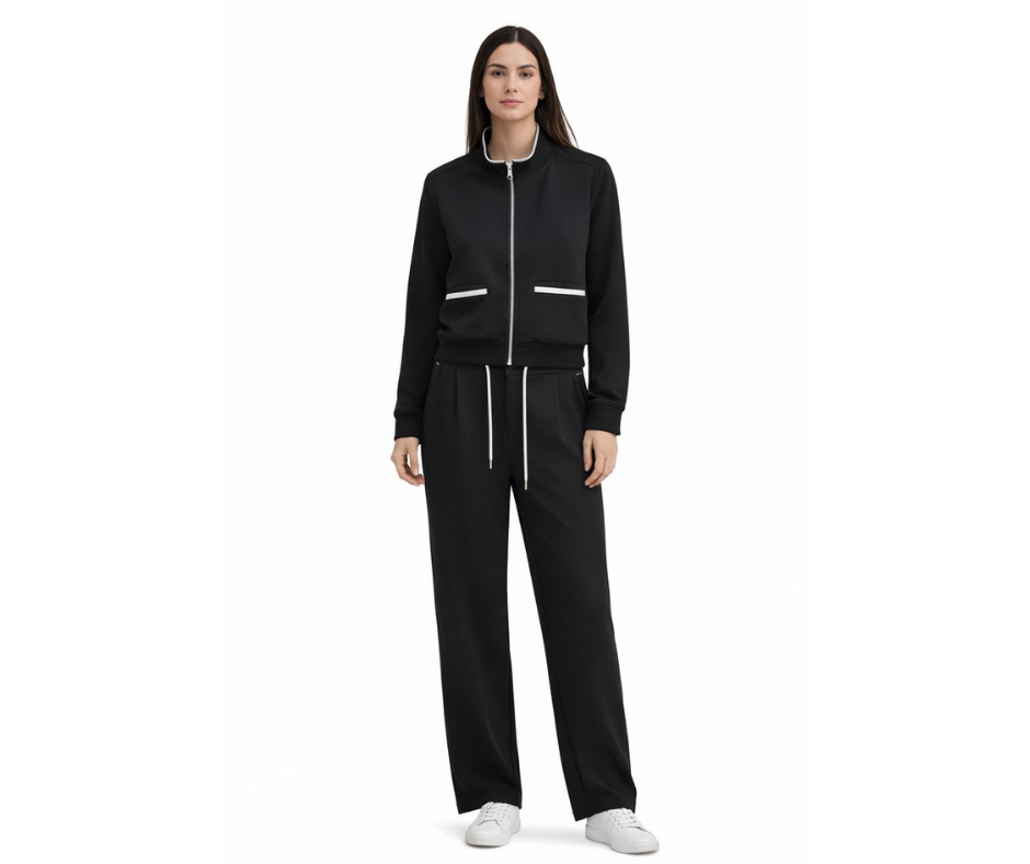 Este conjunto deportivo elegante redefine el estilo casual con un toque sofisticado. Compuesto por una chaqueta con cremallera y pantalón de corte recto, ofrece una silueta moderna, limpia y muy versátil.